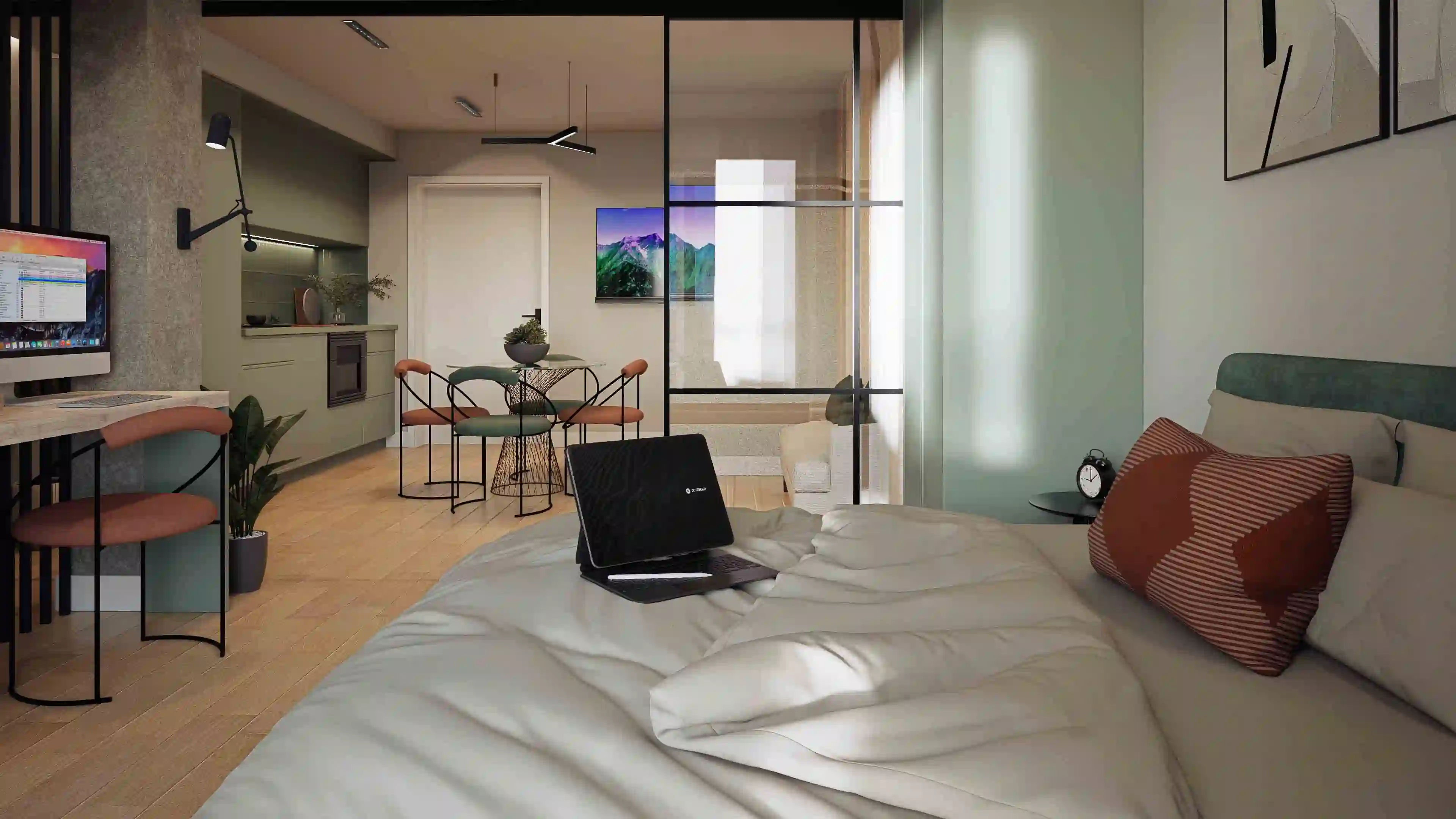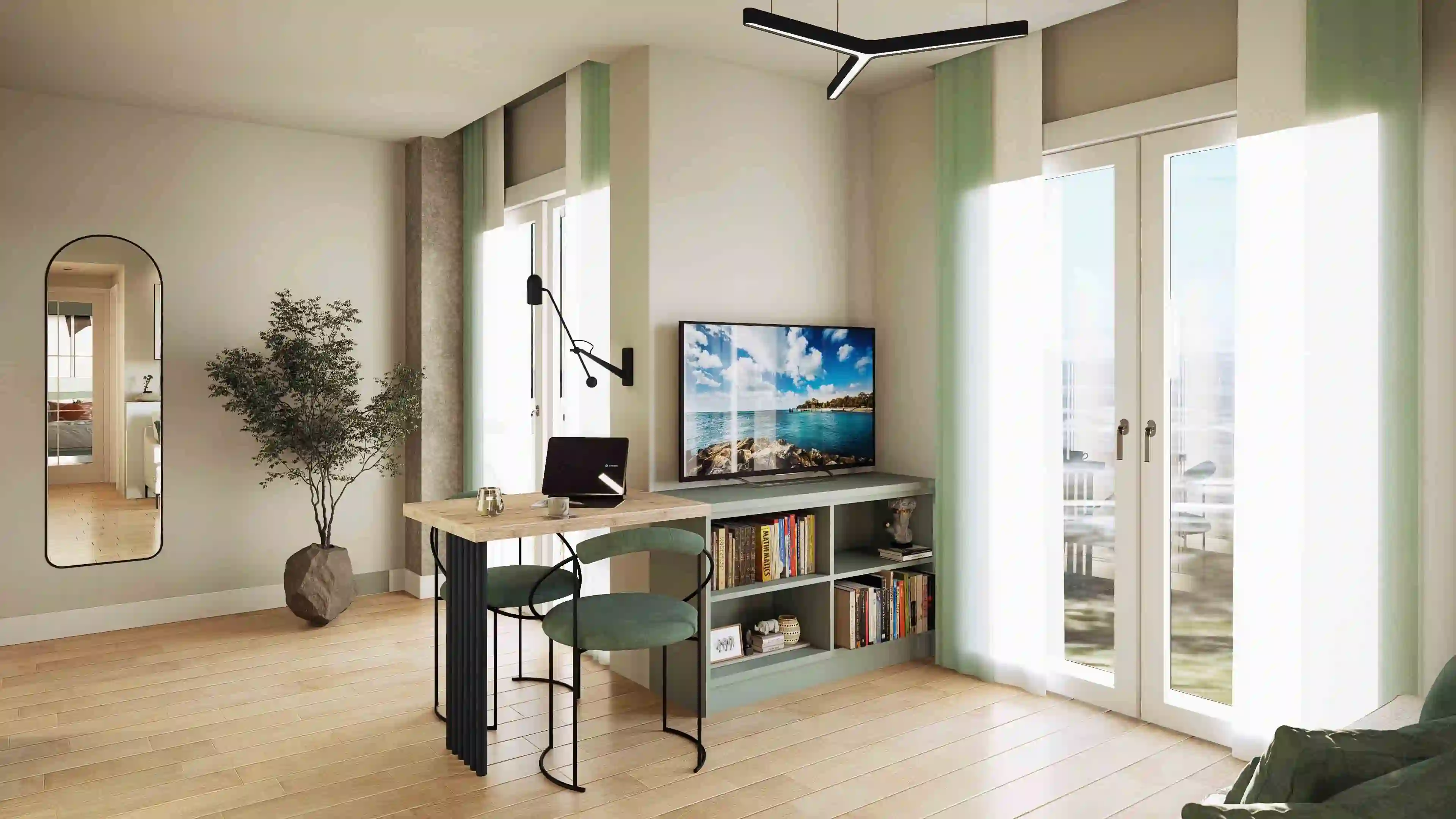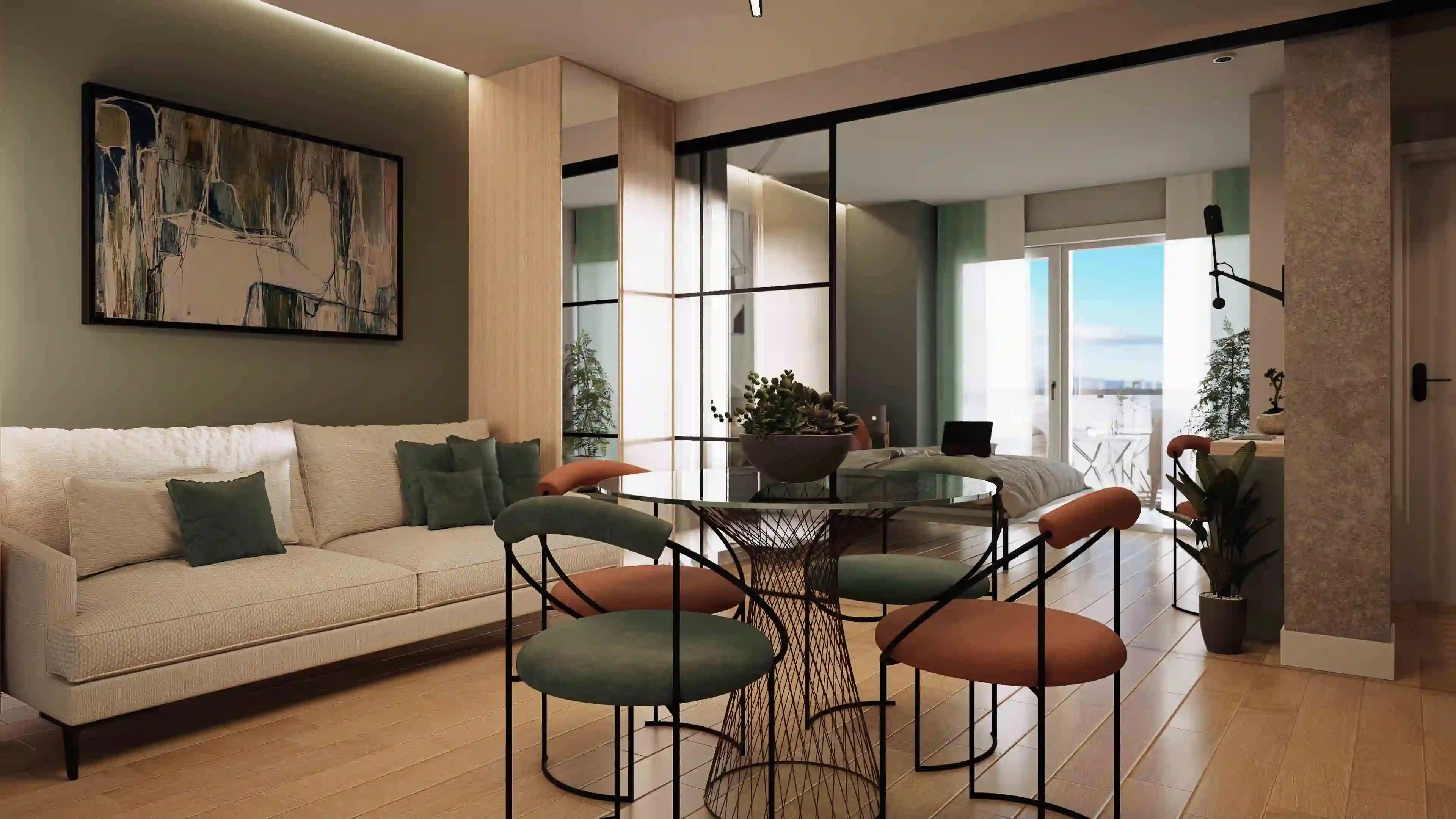Aviso legal: Las imágenes y renders mostrados tienen carácter meramente ilustrativo y no constituyen documento contractual. Algunos elementos mostrados (mobiliario, acabados, decoración, etc.) pueden no corresponderse exactamente con la ejecución final.
